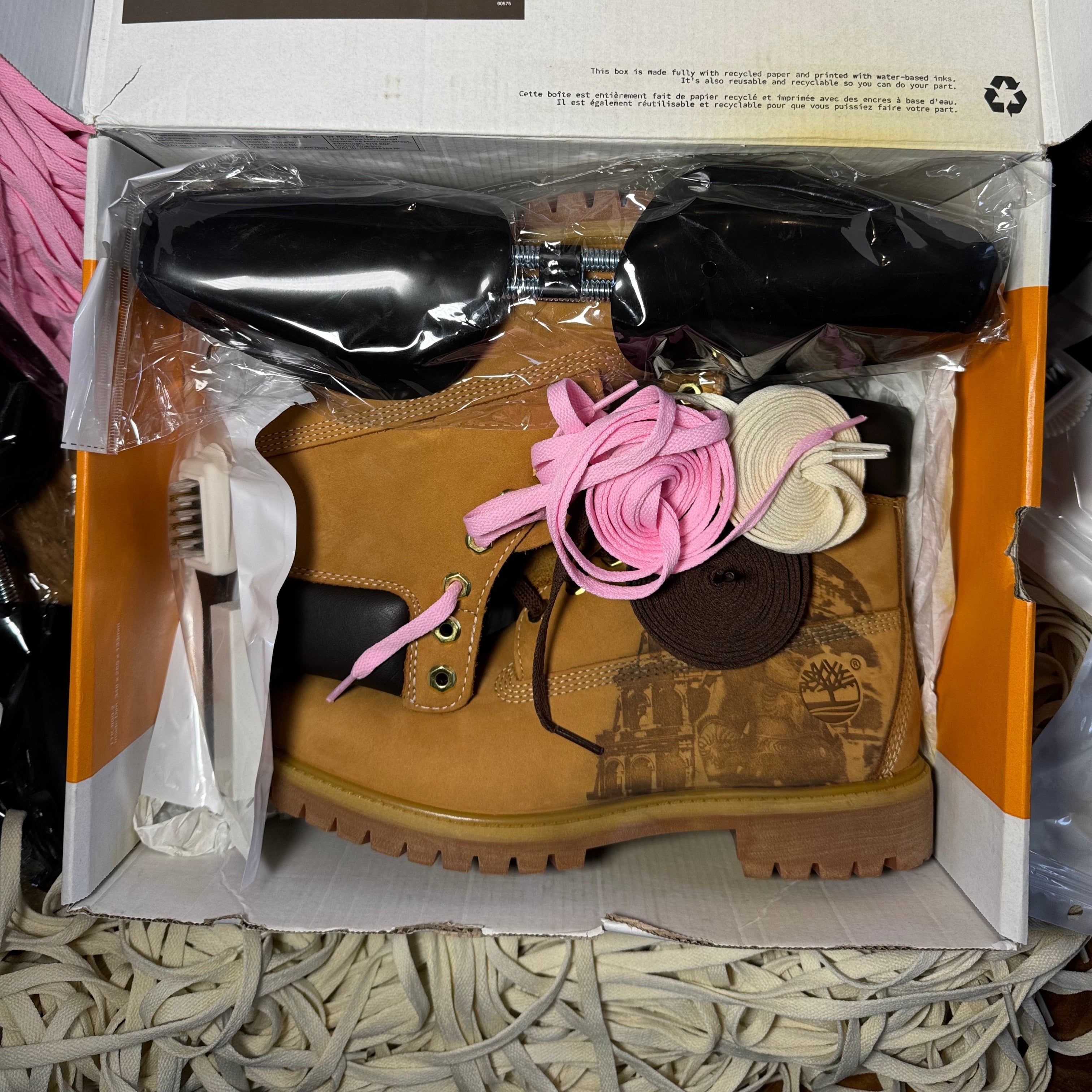 Each pair of Timberland includes the following accessories in the price: Shoe trees, 3 special laces (pink, cream, brown), Cleaning kit for nabook